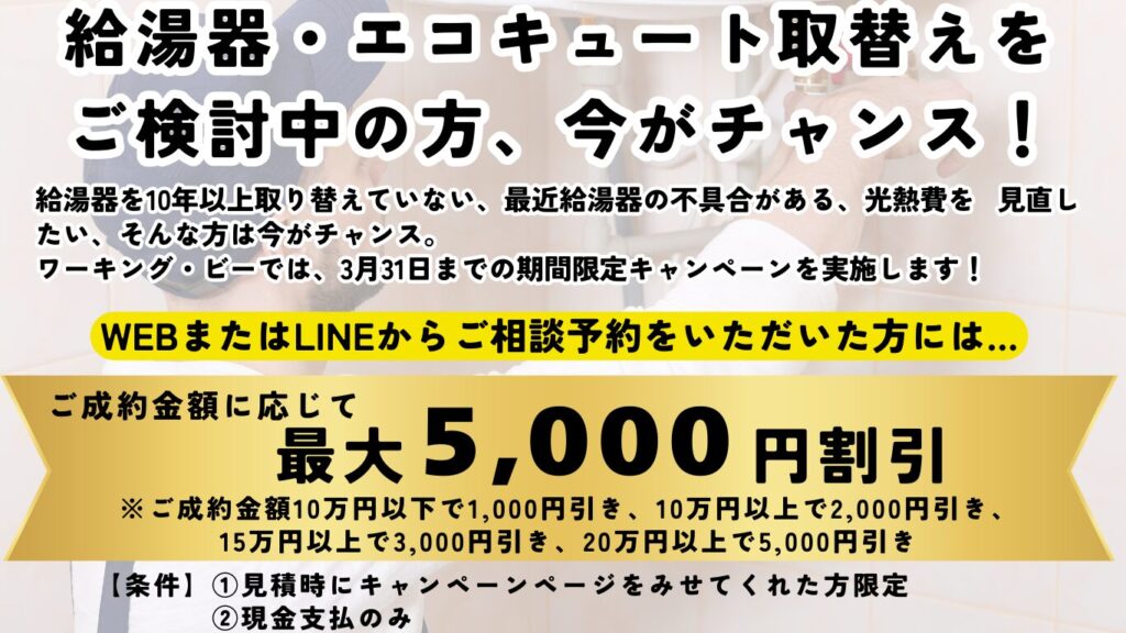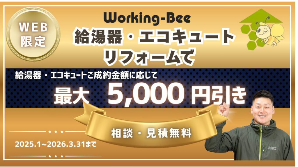 3月給湯器キャンペーンのご案内|八尾市のリフォームはワーキングビーへ