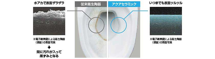 アクアセラミック加工でいつまでたってもツルツルで汚れが付きにくい!